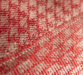 Tweekleurig geweven motief, met een subtiel reliëf en een heldere uitstraling.