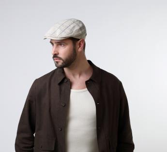 Tijdens een wandeling, voor werk of voor een formele of informele vergadering, is de platte pet een modieus en elegant ontspannen accessoire. Het biedt ook bescherming tegen de hitte.