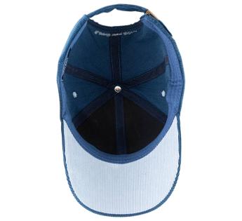 Baseball cap met 6 pans in dikke ribfluweel, met een brede nerf en soepele textuur. Een materiaal met een uitgesproken retro-geest, ideaal voor het tussenseizoen of de winter dankzij de zachte aanraking en natuurlijke warmte.