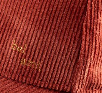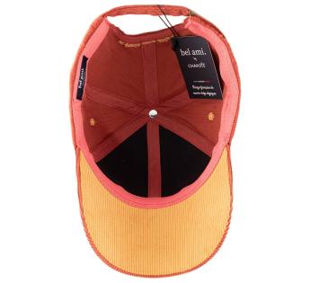 Baseball cap met 6 pans in dikke ribfluweel, met een brede nerf en soepele textuur. Een materiaal met een uitgesproken retro-geest, ideaal voor het tussenseizoen of de winter dankzij de zachte aanraking en natuurlijke warmte.