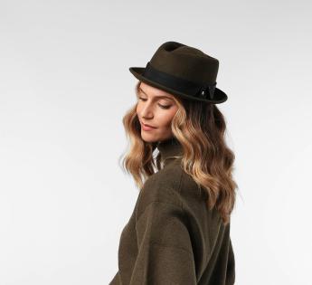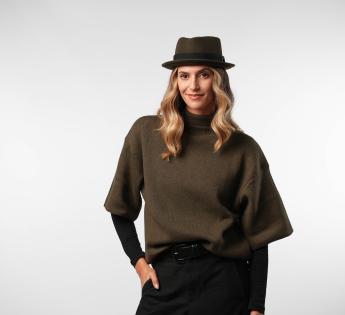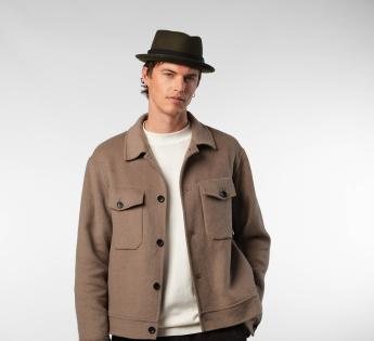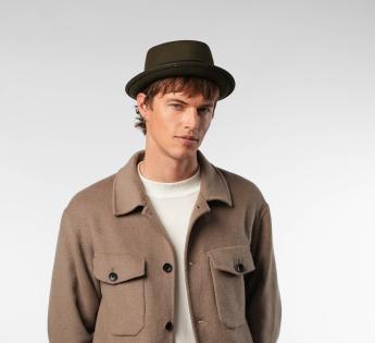 Gemaakt van wol vilt, biedt het structuur, comfort en perfecte stevigheid. Zijn typische platte kroon en rand opstaand vorm geven een moderne uitstraling, terwijl het toegankelijk en gemakkelijk te dragen blijft. Een hoed met een sterk karakter, ontworpen voor degenen die hun stijl willen benadrukken zonder te overdrijven.