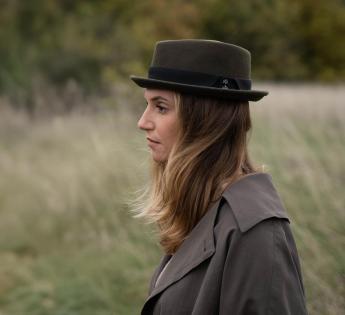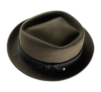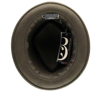 Gemaakt van wol vilt, biedt het structuur, comfort en perfecte stevigheid. Zijn typische platte kroon en rand opstaand vorm geven een moderne uitstraling, terwijl het toegankelijk en gemakkelijk te dragen blijft. Een hoed met een sterk karakter, ontworpen voor degenen die hun stijl willen benadrukken zonder te overdrijven.