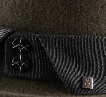 Zelfverzekerde stijl en verfijnde details: deze heruitgevonden porkpie speelt met het subtiele contrast tussen preppy spirit en tijdloze elegantie. Zijn grosgrain hoedenband, vervaardigd als een overhemdkraag en versierd met twee geborduurde knopen, trekt onmiddellijk de aandacht. Een discreet Label en een fijne borduur op de rand, een knipoog naar het draad van de knopen, versterken deze verfijnde harmonie.
