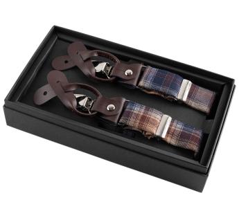 Het tartanpatroon speelt met diepe en warme tinten voor een uitstraling die zowel gedurfd als verfijnd is. De gestructureerde stof biedt comfort en stevigheid, terwijl de leren afwerkingen een beheerst vintage tintje toevoegen. Geleverd in een eenvoudige doos, zijn deze bretels een uitgelezen cadeau of een dagelijkse stijltoevoeging. Te dragen met een overhemd, vest of broek met hoge taille voor een perfect uitgebalanceerde look.