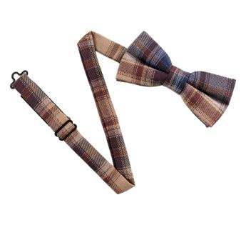 Deze vlinderdas met Schotse ruitmotief benadrukt een sterke persoonlijkheid en een uitgesproken smaak voor elegante details. De diepe, genuanceerde tinten verweven zich in een subtiel ruitenspel, ideaal om een effen overhemd te verfraaien of een formele outfit te begeleiden.