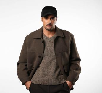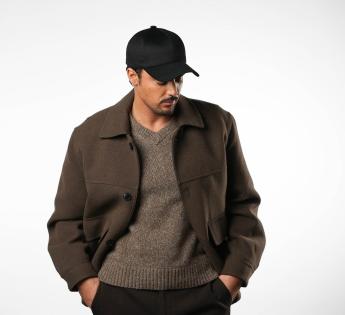 Het viltachtige, zachte en gezellige uiterlijk vangt zachtjes het licht en onthult subtiele reflecties. Deze elegante textuur versterkt ook de van nature waterafstotende eigenschappen van kasjmier, voor een serene draagervaring elke dag.