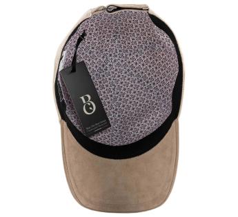 Gemaakt in Italië, heeft het een vizier van volnerfleer dat de silhouet structureert en de stijl bevestigt. De binnenkant is gevoerd met afgedrukt stof, wat een verfijnde touch toevoegt, terwijl de aanpassing aan de achterkant zorgt voor een perfecte pasvorm. Een essentiële garderobe-item, zowel functioneel als elegant.