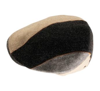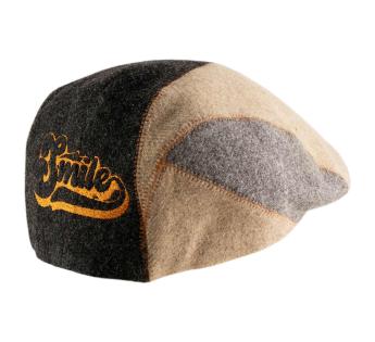 Een patchwork van materialen en stijl: deze Ivy flat cap van onbewerkt Shetland wol biedt een aansluitende en dynamische snit, versterkt door een spel van contrasterende panelen subtiel geaccentueerd door zichtbare stiksels. Aan de achterkant voegt een geborduurde 'Smile' een sterke grafische touch toe, op aanvraag vervaardigd in onze werkplaats in Lyon.