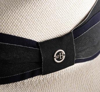 Deze Panama hoed Montecristi onderscheidt zich door het grosgrain lint, verfijnd in tijdloze tinten, waarvan de gelaagde afwerking een subtiele diepte geeft. Het asymmetrische detail dat achteraan uitsteekt, brengt een moderne dynamiek in dit klassieke silhouet, gesigneerd met een geborsteld zilveren badge.