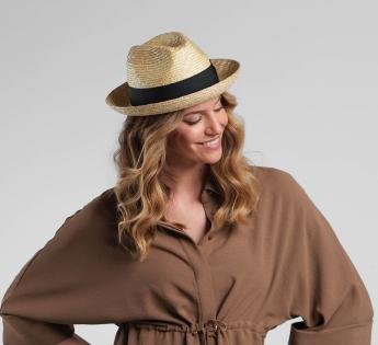 Italiaanse hoed gemaakt van natuurlijke stro. Het is een traditionele vervaardiging van fijne gevlochten stro, rand aan rand genaaid. Het biedt finesse, flexibiliteit en stevigheid.