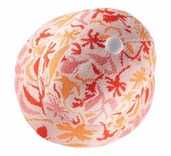 Hoed die past in de tropische trend door zijn vrolijke bloemenmotief. De stof is eigenlijk een gebreid jacquard, wat het ontwerp lichtheid en ademend vermogen geeft. Het hoofddeksel is daardoor prettig om te dragen en zal ons zeker bevallen in de hitte.