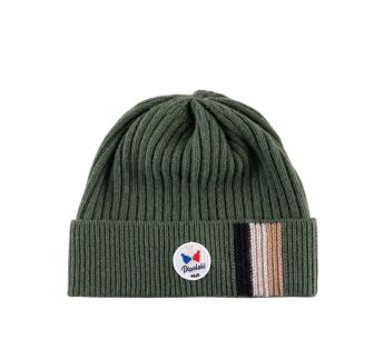 Zacht comfort en gedurfde stijl voor deze geribbelde muts, gemaakt in Frankrijk. Gebreid van gerecyclede garens die wol, kasjmier en viscose mengen, biedt het een zachte sensatie en aangename warmte vanaf de eerste kou. De kleurrijke strepen voegen een grafisch tintje toe dat zijn sobere en eigentijdse uitstraling verlevendigt.