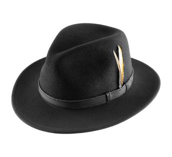 Hoed gemaakt van soepel vilt, met vormgeheugen, zeer licht en met thermo-regulerende eigenschappen. Als dat niet het geval is, komt deze creatie echt dichtbij de perfectie met al deze functionaliteiten. Het accessoire is inderdaad gemaakt volgens een exclusief proces voor een resultaat dat aan alle smaken voldoet en een lange levensduur heeft. Onmisbaar! Deze Player hoed heeft een jazzy uitstraling met zijn korte opgerolde rand, zijn fijne band en zijn veer. De perfecte afwerking stelt je in staat om overal en altijd een casual en elegante look te tonen.