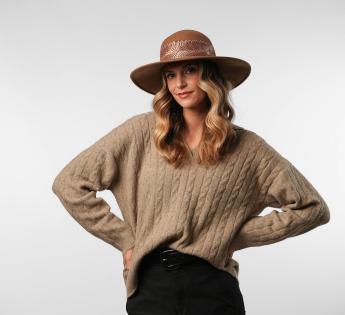 Gemaakt in onze werkplaats in Lyon, belichaamt deze Flaphoed een bohemien chique stijl met verfijnde afwerkingen in. De kroon is verfraaid met een lichtgevende koperen kant met metalen reflecties, zorgvuldig met de hand aangebracht. Een kostbare trimmen, benadrukt door ons discrete Label, voor een resultaat dat zowel elegant als gedurfd is.