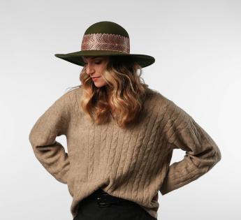 Gemaakt van natuurlijk waterbestendig gevilt wol, biedt het comfort, bescherming en ondersteuning. De soepele vorm met brede randen omlijst het gezicht met gratie en vrouwelijkheid. Een uitzonderlijk stuk, geboren uit ambachtelijke expertise, om je stijl met karakter te bevestigen.