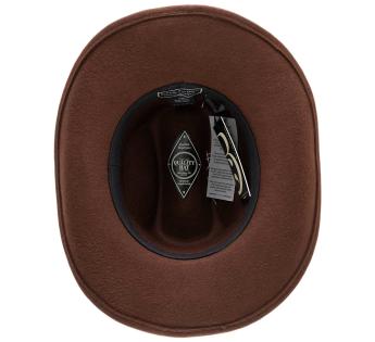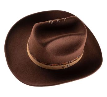 Rauw charisma en westerse allure voor deze cowboyhoed, vervaardigd in onze werkplaats in Lyon. Zijn hoogwaardige vilt beschermt je zowel tegen windvlagen als tegen ochtendkou. De hoge kroon met platte bovenkant en de iets opgetrokken brede rand roepen de authenticiteit van de grote buitenruimtes op. Fijne borduursels aan de bovenkant, een knipoog naar de codes van het Wilde Westen, voor een verfijnde en onderscheidende afwerking.